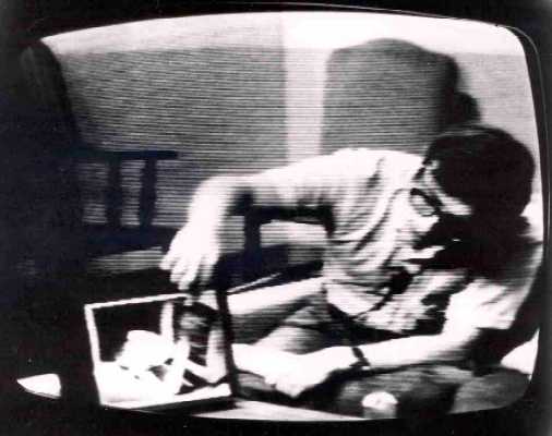 After Dinner featured Andy van Dam, Chris Braun, Bev Hodgson (then Brown Daily Herald editor), Al Basile and myself talking about hypertext for 30 minutes on a stage set that was supposed to look like a professor’s living room, right next to Julia Child’s WGBH TV kitchen. Andy is pointing to photo of Chris Braun at the IBM 2250 Hypertext Editing System (HES) console.
