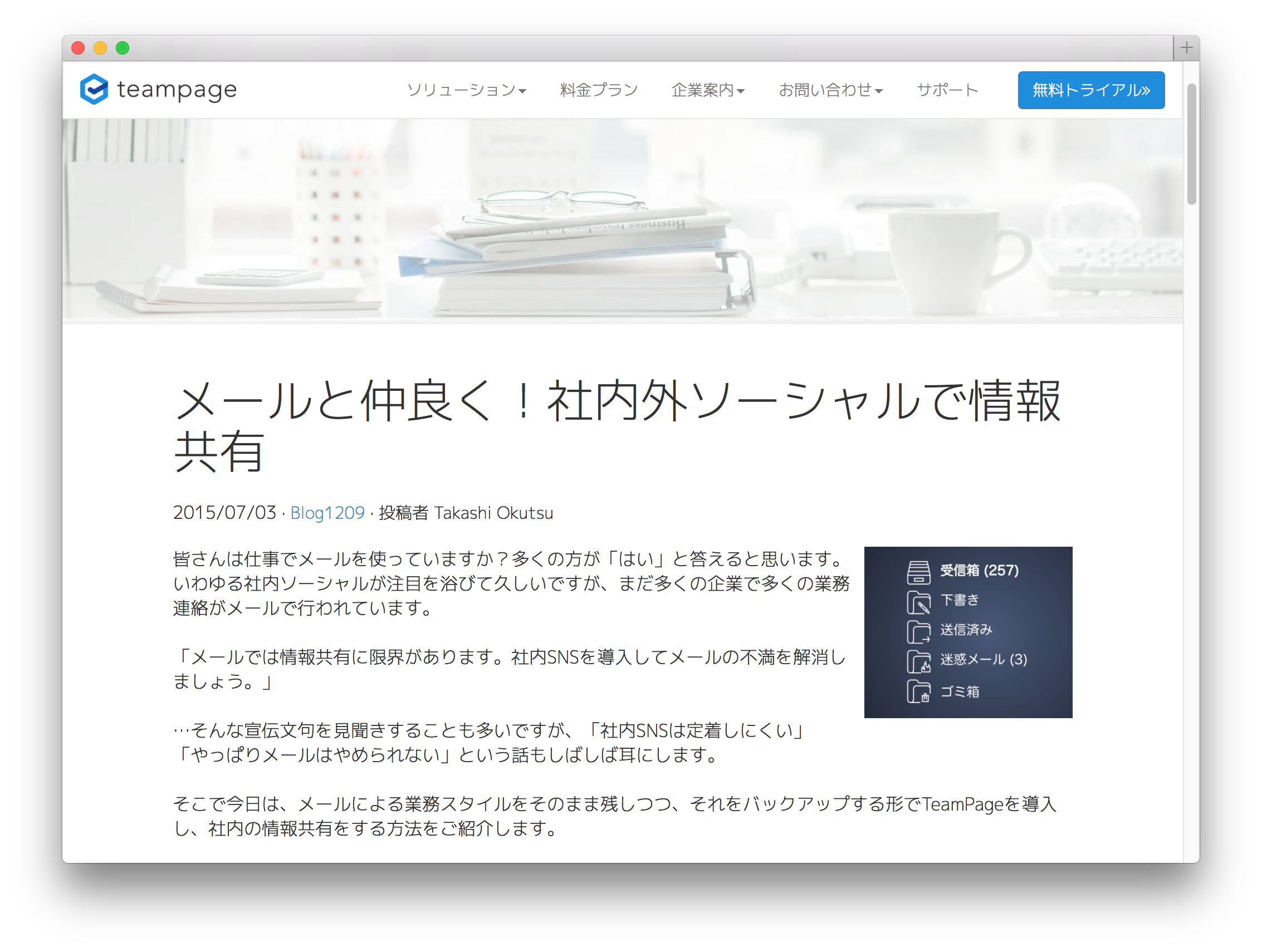 Takashi concludes (in Google translation): "I think you have done already the spinach by e-mail. Why not been investigated in-house social us to support it. Just add a little plus of 'CC in TeamPage', you can get a big plus."