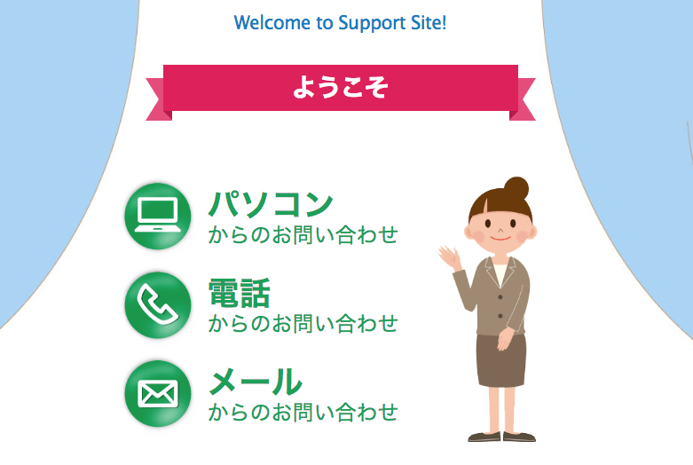 - There were 3 green buttons, "Inquiry Form for PC", "Request via Phone", and "Request via Email".