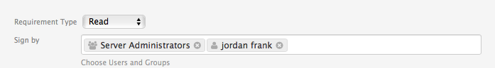 The types of requirement supported are extensible, so you can easily add custom types. The system reminds everyone involved of upcoming and overdue digital signature requirements, and managers can see exactly who signed when—and who has not yet signed—broken down by person, group, document, or space.