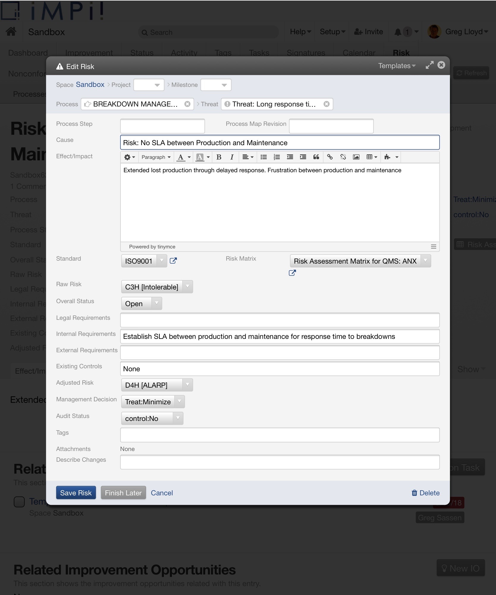 Quality, Risk, and Improvement capabilities of the TeamPage Quality Management solution have been substantially revised. They are now more tightly integrated with each other and extensible to handle related standards based activities.